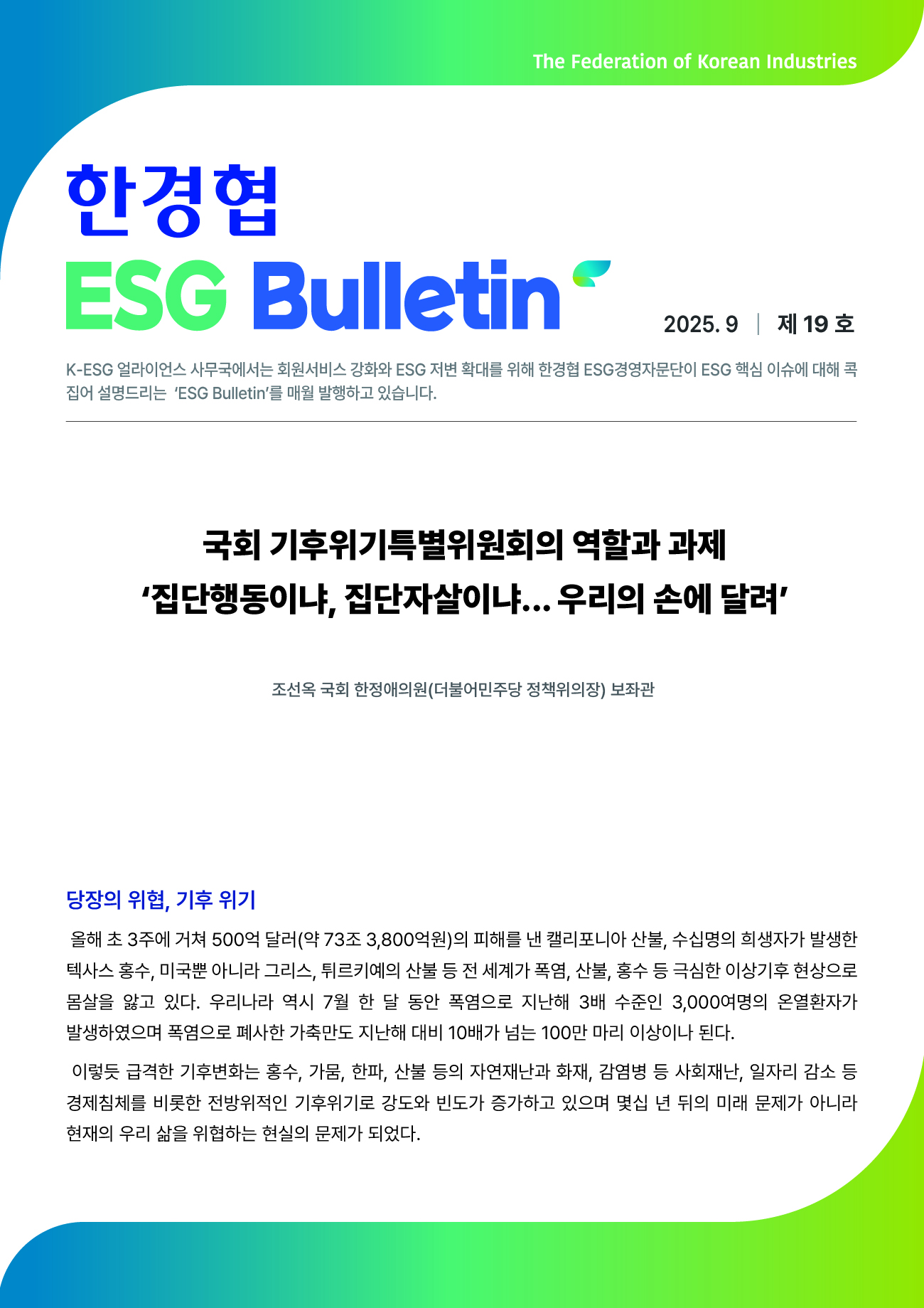 [한경협 ESG Bulletin 19호] 국회 기후위기특별위원회의 역할과 과제