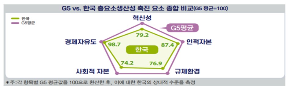 경제성장의 엔진 총요소생산성주), 한국 주요국(G5) 대비 열위