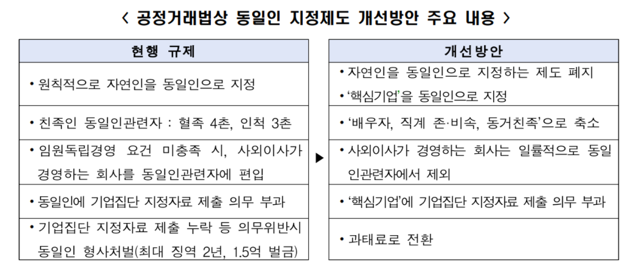 * 주4) 공정거래법 시행령 개정으로(’24. 5. 7. 국무회의 통과), 제한적으로 법인을 동일인으로 지정 가능