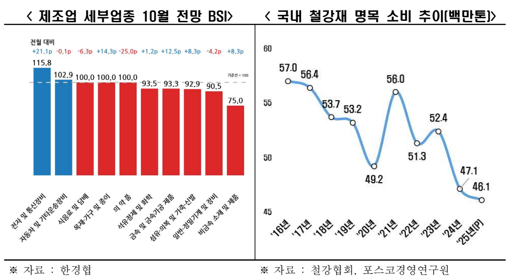 * 주3) 제조업 BSI 전망치 : 100.5(’24.3월) 98.4(4월) 95.5(5월) 95.9(6월) ... 84.2(’25.1월) 93.0(2월)95.1(3월) 92.0(4월) 79.2(5월) 96.0(6월) 86.1(7월) 87.1(8월) 92.6(9월) 96.8(10월)