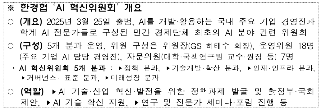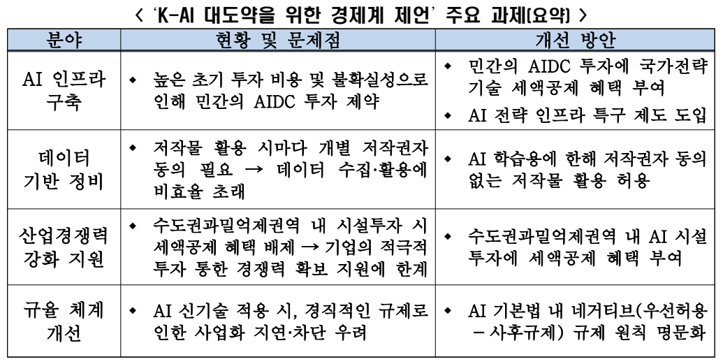 - 인프라·산업경쟁력·규율체계 등 「K-AI 대도약 위한 경제계 제언」국가AI전략위에 전달