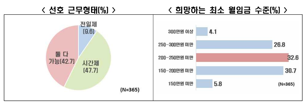 희망 근무형태 ‘시간제(47.7%)’가 압도적, 월임금 수준은 평균 227만 원