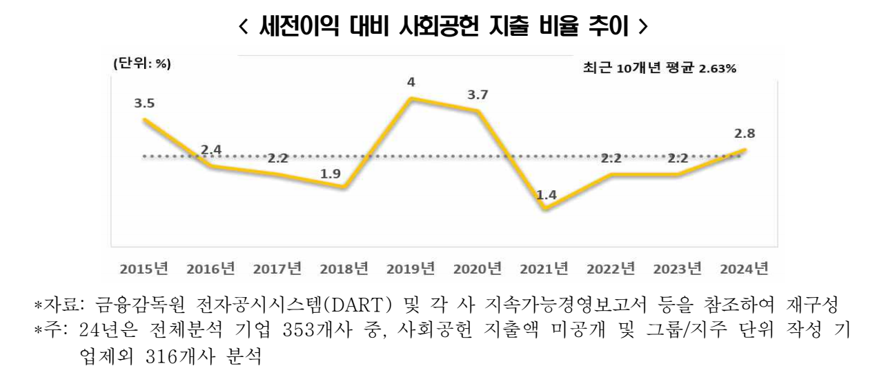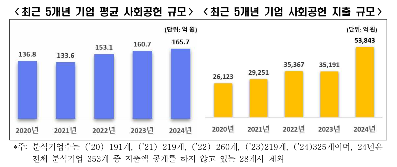 2024년 기업 평균 사회공헌 지출 약 166억, 역대 최대치