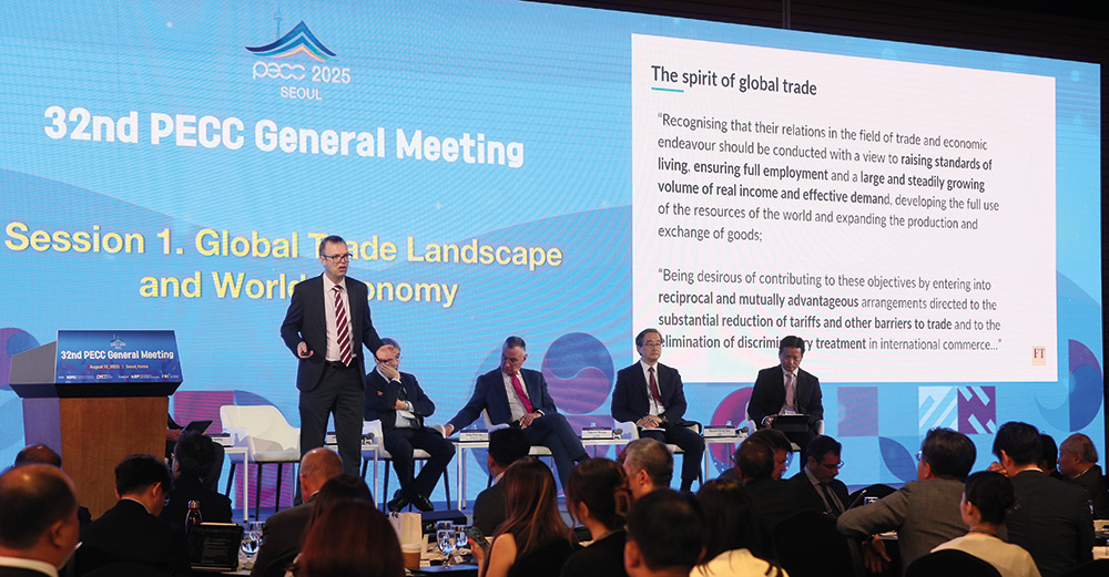 Ahead of the APEC Economic Leaders’ Meeting scheduled from October 31 to November 1 in Gyeongju, more than 300 experts from the Asia-Pacific region gathered in Korea. To support Korea’s return as APEC host economy after two decades, the Federation of Korean Industries (FKI) and the Korea Institute for International Economic Policy (KIEP) jointly held the 32nd General Meeting of the Pacific Economic Cooperation Council (PECC) on August 12.