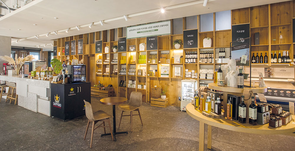 At Sangha Farm, six artisan workshops offer wholesome flavors crafted with carefully selected natural ingredients. These include sun-dried salt and agricultural produce grown in Gochang-gun, organic milk from Maeil Dairies’ “Sangha Farm,” and eggs laid by free-range hens.