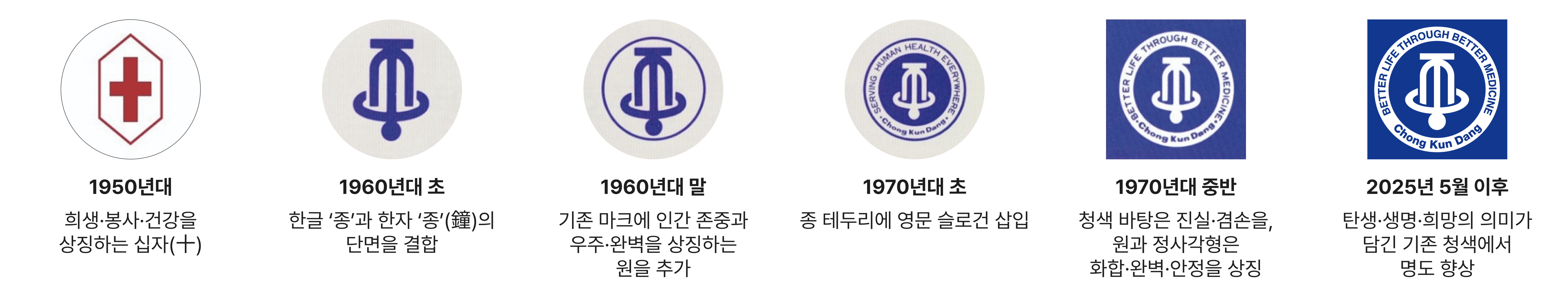 올해 5월 종근당은 창립 84주년을 맞이해 약 50년 만에 CI를 개편했다. 특히나 이번 CI 리뉴얼은 종근당의 역사와 미래를 아우른 상징적 작업으로서 의미가 깊다. 역대 종근당 심벌에는 인류의 생명을 지키는 제약업의 사명감을 바탕으로 1950년대에는 국민 보건 향상에 앞장서겠다는 의지가, 1960년대에는 생명 존중의 이념이, 1970년대에는 국제화 시대의 발전 의지가 담겼다.